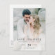 Esta simples e na moda, foto moderna, salvar a data do cartão postal do casamento contém um texto preto elegante na frente com uma mensagem 'SAVE THE DATE' acima de seus nomes, data e local do casamento. No verso, você pode decidir excluir as linhas das informações do destinatário se preferir uma aparência mais minimalista, etc. A cor de texto padrão no verso é preta. No verso, escolhemos uma ordem atípica para a informação, colocando o texto 'POR FAVOR, SALVE A DATA' após o texto 'PARA O CASAMENTO DE', que lhe dá um charme menos percorrido. Você pode alterar isso alterando o texto em cada um desses campos de texto e inserindo manualmente a peça que deseja colocar na ordem que deseja mostrar. Nós definimos o plano de fundo como transparente para deixar a cor do papel simplesmente servir como o tom base. Você pode mudar isso facilmente selecionando uma das cores básicas nas ferramentas de edição, inserindo um número de cor se você tiver uma matiz específica em sua pesquisa, ou olhando para a ferramenta de espectro de cores e escolhendo algo à vista. Fizemos a escolha padrão de papel, mas você pode mudar para -semirbrilho se preferir essa aparência. Esperamos que você aproveite o experimento com este modelo de cartão postal limpo e contemporâneo e o faça exclusivamente seu com as ferramentas intuitivas de design, sua foto favorita e sua inspiração. Temos uma seleção de outros cartões salve a data modernos minimalistas em vários formatos incluindo uma versão deste design com texto branco na frente, por isso, por favor, deem uma olhada em nossa loja!