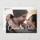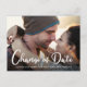 Mesmo que as circunstâncias exijam o adiamento da data do seu casamento, mostre aos seus convidados que o seu amor continua com a sua foto de noivado favorita neste cartão postal de anúncio de mudança de data de casamento. "Mudança de Data" está escrito em letra cursiva branca contemporânea grande na parte inferior da sua foto, e abaixo você pode personalizar seus nomes e se o casamento foi adiado, local alterado, etc. No verso, você pode personalizar ainda mais sua mensagem em mais detalhes e adicionar a nova data e local do casamento.