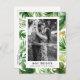Anuncie a data do seu casamento com este cartão postal de salvar a data tropical. Ele apresenta ilustrações em aquarela de folhas de palmeira, folhas de bananeira, costela-de-adão e samambaias. Este cartão de anúncio de salvar a data com folhagens é perfeito para casamentos tropicais e de verão e outros eventos. Personalize adicionando nomes, fotos e mensagem.