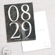 Este cartão de identidade moderno e ousado apresenta a data do seu casamento em algarismos extras em branco sobre um fundo fotográfico. Os nomes dos casais e o local do casamento são exibidos dentro do zero durante meses de janeiro a setembro e à esquerda do numeral um para meses de outubro a dezembro. Este chic salve o cartão de data fará uma declaração e dará o tom para o seu casamento. A parte traseira é configurada como um cartão-postal, fazer enviando fácil e barato.