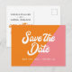 Cartão Postal De Anúncio Funky Retro Orange Pink Casamento Salvar A Data