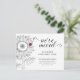 Anuncie para sua família e amigos que você se mudou com este lindo cartão de anúncio de mudança floral preto e branco. Este design apresenta um girassol desenhado artisticamente com uma joaninha vermelha sentada nos pétalas. À direita, em tipografia cursiva, lê-se "Nós nos mudamos" e abaixo está o nome da sua família, endereço e número de telefone para você personalizar. No verso do cartão há uma mensagem personalizada com sua assinatura acentuada por um girassol correspondente. Desenhado por Susan Coffey.