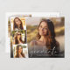 Cartaz de anúncio da graduação elegante com a foto do formando sobreposta com uma faixa de três fotos quadradas menores e "Formando" em uma escritura branca moderna e seu nome e ano de aula em uma tipografia branca simples. No verso, adicione uma foto adicional e uma mensagem personalizada.