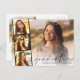Cartaz de anúncio da graduação elegante com a foto do formando sobreposta com uma faixa de três fotos quadradas menores e "Formando" em uma escrita moderna e seu nome e ano de aula em uma fotografia simples. No verso, adicione uma foto adicional e uma mensagem personalizada.