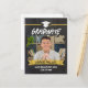 Cartaz de anúncio de graduação legal com um fundo de quadro e uma legal fonte de quadro de referência com um cartaz amarelo e boné de formatura branco em um olhar aflita. Adicione uma foto do quadro de traçado do pincel do dentro do formando. Cartaz de anúncio de graduação em quadro de chaleiras em apuros personalizado com foto, nome, escola e o ano com boné de formatura e diploma em estilo chalk contra fundo de chalkboard com detalhes amarelos.