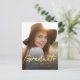 Este é um cartão-postal de anúncio de graduação elegante e na moda com segundo grau usando a letra moderna de escrita em ouro, juntamente com uma foto minimalista do solteiro. O lado inverso inclui uma mensagem que você pode personalizar. Entre em contato com o designer para obter informações relacionadas a este design.