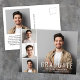 Cartão postal de anúncio de graduação moderno minimalista com a foto do graduado sobreposta com uma faixa de três fotos quadradas menores e "Graduado," o nome, a escola e o ano de conclusão em tipografia branca simples. No verso, adicione uma foto adicional e uma mensagem personalizada.