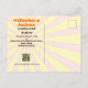 Um casamento único salve o cartão postal com um salto brilhante com uma sensação de festival de música de verão, Sua foto em um cobrir de álbum retrô vinil. O fundo é uma explosão solar brilhante em cores cor rosa e amarelas do verão, coordenando com o texto no cobrir do álbum e no rótulo do registro, que apresenta seus nomes, data do evento e local. O verso do cartão postal apresenta o mesmo burst que um fundo e tem espaço para mensagens adicionais sobre seu grande encontro, incluindo um site de casamento QR. Vintage 60, 70, 80 fãs de música. LP de 12 polegadas. Faça seus hóspedes dançarem na esteira musical do seu casamento! Todo texto é personalizado por você. As cores podem ser personalizadas na Ferramenta Design. A cor do registro é preta.