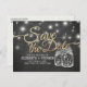 Casamento Salve as Modelos do Cartão-Postal - Folha Ouro Faux Elegante Salve o Script de Lettering de Data e as Luzes de String Jar Vintage Mason com Fundo de Quadro Preto Grunge. Um Design perfeito para o seu grande dia. Todo estilo de texto, cores, tamanhos podem ser modificados para ajustado das suas necessidades!