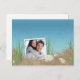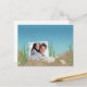 Fotografia personalizada em bolhas oceânicas com estrelas e conchas na areia para salvar a data.