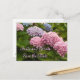 Hídrangas elegantes florescem em pinks, mauve e cores azuis suaves acendem este cartão-postal. Um belo cartão postal para um amigo ou para a sua própria coleção.