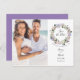 Esta elegante foto floral de aquarela salva o cartão de data, apresenta sua foto e uma bela vila floral que envolve seu roteiro, salve a mensagem de data acima de seus nomes, data e local. O inverso tem detalhes adicionais sobre a data, incluindo seu site de casamento em um fundo de lavanda. Projetado por Thisnotme©