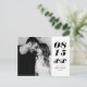 Guarde a data do cartão postal com tipografia em negrito e minimalista. Personalize adicionando sua foto de noivado favorita, nomes, data de casamento, local de casamento e outros detalhes. Esse cartão postal preto e branco, é perfeito para qualquer tema de casamento e qualquer estação.