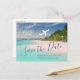 Cartão Postal De Anúncio Island Beach Wedding Heart Airplane Save the Date