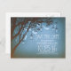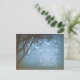 Vintage romântica salva a data com ramos de árvores ruidosos, rústicos e azuis, luzes brilhantes de cordas e cheio de vagalumes de pedreiro.