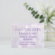 Um livro de lavanda bonito salva o cartão-postal de data. Design de Amelia Carrie para zazzle.com/GlitterInvitations Tenha um evento MARAVILHOSO!! Nota: Este é um impressão gráfico de trabalho de arte e não contém nenhuma falha.