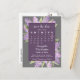 Este belo cartão postal de salvar a data permitirá que seus amigos e familiares saibam sobre a data do seu casamento. O design apresenta um calendário personalizável com um coração em torno do seu dia especial em uma moldura roxa empoeirada, rodeada por uma profusão de flores de lilás pintadas à mão em um fundo cinza. O verso tem um gráfico fofo que diz "pencil us in" com espaço para uma nota pessoal.