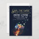 Especial e único, guarde o cartão postal com um belo jarro de pedras brancas com luzes brilhantes - vagalumes. Moderno, mas vintage, salva a data perfeita para os temas de casamento do país rústico.