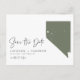 Celebre seu amor com um toque único ao anunciar seu casamento com estilo usando este cartão postal de Save the Date com Código QR, apresentando o mapa do estado de Nevada. O design exibe o Silver State com um contorno de mapa moderno e elegante. O código QR permite que seus convidados acessem facilmente todos os detalhes do seu casamento, página de RSVP ou uma mensagem personalizada.