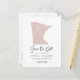 Anuncie a data do seu casamento para familiares e amigos com este cartão postal de anúncio de salvar a data com tema do estado de Minnesota. Ele apresenta uma ilustração do estado de Minnesota, tipografia simples e uma escrita à mão. Personalize adicionando nomes, data, local e outros detalhes. Este cartão de salvar a data do estado de Minnesota é perfeito para qualquer tema de casamento.