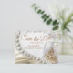 Cartão Postal De Anúncio Marfim,Verde,Azul,Ouro Seda e Pérolas Salvar Data