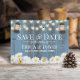Margaridas Rústicas e Lanternas Azul Desbotado Anúncios de Casamento em Madeira de Celeiro Save the Date.