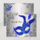 Linda máscara de gala azul real, cartão postal para salvar a data. Você pode excluir a parte prateada do verso se quiser branco ou adicionar a cor de fundo de sua escolha.