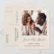 Cartão Postal De Anúncio Menor Beige do Script de Foto Salve a Data
