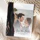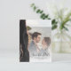 Este elegante e moderno salve a data do cartão postal apresenta uma coloração aquosa preta, borda agitada, aparada com falso rosa dourado. Substitua facilmente a imagem de exemplo por sua própria foto. Adicione os nomes e a data na frente e o endereço de devolução, os nomes, a data e outras informações no verso.