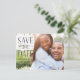 Parabéns no Big News! Os cartões salve a data são o primeiro passo para que o pessoas saiba tudo sobre seus planos. Este design apresenta um estilo moderno e elegante, adequado para fotos a cores de cheio. Substitua a foto na frente por sua própria foto e personalize-a ainda mais com suas próprias datas e detalhes clicando no botão "Personalizar!".