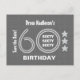 Aniversário de 60 anos com Número Prateado Listrado, Estrelas e Fundo com Padrão Cinza. Aqui está um design moderno e atual de cartão postal de salve a data de aniversário com letras divertidas. Todo o texto é personalizável, então você pode personalizar com um nome, mudar o ano se necessário e adicionar os detalhes da sua festa. Divertido!