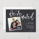 A caligrafia moderna diz: NÓS MOVEMOS sobre seu instantâneo de família favorito ou foto da nova casa conectada com fita de ouro impressa em um pano de fundo do giz neste cartão de anúncio giro e simples. A fácil personalização do aviso de mudança de endereço fará com que seja rápido e na moda para compartilhar as notícias de sua nova casa!