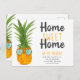 Lar doce lar, envie seu novo endereço para amigos e família com esta mão pintada com abacaxi cor de laranja e água verde e tipografia moderna. Anúncio perfeito. O abacaxi está vestindo óculos bonitos em forma de coração.
