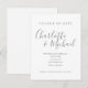 Com nomes de estilo de assinatura, este cartão de mudança de data cinza e branco elegante pode ser personalizado com as informações de adiamento em letras cinzas chiques. Criado por Thisisnotme©