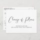 Se as circunstâncias exigirem que você reduza a presença no seu casamento, você pode informar familiares e amigos com este cartão-postal de anúncio de casamento menor moderno e minimalista, mas elegante, em preto e branco. "Mudança de planos" é escrito em uma fonte estilosa e você pode personalizar facilmente a mensagem de redução do casamento em mais detalhes, incluindo quaisquer eventos de casamento virtual e celebrações futuras.