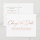 Cartão Postal De Anúncio Mudar a Data Rosa Dourado Moderno Script