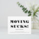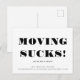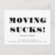 MUDAR É UM SACO! Design simples baseado em tipografia para um cartão postal de anúncio de mudança. Minimalista e moderno, este aviso de mudança de endereço preto e branco, facilmente personalizável, tornará rápido e elegante compartilhar as notícias da sua nova casa!