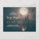 Noite de lua de cheio romântica salve os cartões postais com plantas aquáticas e libélulas. É perfeito salvar a data para casamentos ao ar livre.