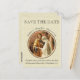 Este é um lindo cartão postal católico de "Salve a Data" com a imagem da Mãe Bendita & St. Joseph na frente e uma bela citação das escrituras.