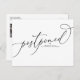 Mude a data! Anuncie para sua família e amigos o adiamento do seu casamento com este cartão postal. Ele apresenta caligrafia elegante e tipografia simples. Personalize adicionando sua foto, nomes, endereço e outros detalhes. Este cartão postal de mudança de data também será perfeito como um anúncio de casamento às escondidas.
