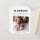 Cartaz de anúncio de noivado engraçado com sua foto e "Surpresa! Finalmente estamos engajados" em uma mistura de tipografia e roteiro modernos. Personalize com seus primeiros nomes na frente e um noivado personalizado ou salve a mensagem de aviso de data na parte traseira.