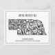 Envie para sua família e amigos este moderno cartão postal de anúncio de mudança para o estado de Nebraska, com estilo boho. Este design elegante apresenta uma ilustração em preto e branco do estado de Nebraska acentuada por um mandala floral. A parte superior do cartão diz "Nós nos mudamos para:" E abaixo da ilustração está o seu nome e novo endereço para personalizar. O verso do cartão postal tem uma mensagem e assinatura para você personalizar. Criado por Susan Coffey.