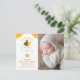"Nossa abelha de mel." Um visual doce e brincalhão de uma linda abelha, kawaii, abelha e colmeia com um roteiro de caligrafia amarelo alaranjado sobre branco à esquerda e a foto de sua escolha à direita, ajuda a anunciar o nascimento do seu precioso, novo bebê. Uma adorável abelha de bebê adicional com o seu bilhete pessoal está atrás. Espalhe o amor e a alegria sempre que você envia este cartão postal de na moda e moderno anúncio de nascimento. Personalize com o nome do seu bebê, foto, estatísticas de natalidade e mensagem personalizada. Orgulhosamente envie isso a todos que você conhece! Na frente, substitua a foto da amostra por uma de sua autoria e digite as estatísticas do seu bebê. No verso, digite sua cópia pessoal usando o modelo fácil fornecido ou exclua completamente a sua nota manuscrita. Adicione seu endereço de retorno para personalizar este cartão postal de anúncio de nascimento. Por favor, me mande mensagens com quaisquer perguntas ou solicitações.