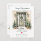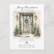 Este anúncio comovente e festivo mostra o ditado "Feliz Natal de Nossa Nova Casa" com uma bela porta de aquarela adornada com árvores de Natal, pinheiros e coroa. O anúncio é perfeito para enviar aos amigos e à família durante a temporada de férias para informá-los sobre seu novo endereço. A frente do anúncio apresenta o ditado e a porta frontal verde de cor d'água, e inclui seu novo endereço e informações de contato. O design geral é festivo e convidativo, e o anúncio certamente coloca um sorriso nos rostos de seus entes queridos.