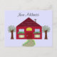 Um design de casa vermelha giro com caixas de flores e árvores ao redor. Um caminho de pedra e pequenas flores crescendo. Personalize com seu novo endereço. Envie um para todos os seus contatos do catálogo de endereços.