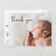 Personalize este elegante e moderno cartão postal de anúncio de nascimento de bebê com foto. Compartilhe a foto do seu recém-nascido e envie sua gratidão e alegria ao mesmo tempo, texto personalizável, estatísticas de nascimento no verso com seu endereço e nomes.