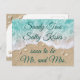 A brincadeira divertida e alegre, Areia de Pé Salgado Beijos em breve Sr. e Sra. acentua este convite de casamento Save the Date sobre um fundo de água turquesa, areia da praia, conchas e estrelas-do-mar, tornando-o perfeito para casamentos na praia, tropical ou destino. A parte traseira deste cartão-postal Save the Date é ainda decorada com mais areia da praia, conchas e estrelas-do-mar. Se precisar de itens adicionais de coordenação para o seu casamento, basta entrar em contato conosco em prettyfancyinvites@gmail.com com o seu pedido.