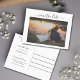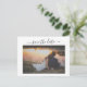 Um cartão de save the date com foto em um cartão postal. Uma maneira econômica de enviar seus save the dates. Caligrafia moderna e bonita com sua foto na frente. Os detalhes da data do seu casamento estão no verso do cartão postal junto com um campo de endereço de devolução.