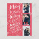 Este cartão moderno e chique da foto do feriado dobra como umas economias o cartão de data para o casal recentemente contratado. As características dianteiras 3 de suas fotos acentuaram flocos de neve à mão tirados e a mão rotulou a tipografia que diz que "os beijos alegres e o feriado morno desejam do logo ser Sr. e Sra." em um fundo vermelho. A parte traseira caracteriza uma foto completa com uma folha de prova branca transparente com suas economias os detalhes da data, o endereço e a mensagem do costume.