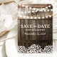 Cartões salve a data não são o seu convite típico — eles são uma importante primeira declaração sobre o seu casamento. Para os casais que procuram fazer uma impressão ousada mas eterno sobre os seus hóspedes, a série rústica de luzes casamento salvam os cartões de data que contêm um fundo de carvalho-caseiro, luzes de cordas-reluzentes, hálito do bebê, seu monograma e a redação moderna do casamento fornecem uma combinação convidativa de nostalgia e sofisticação.